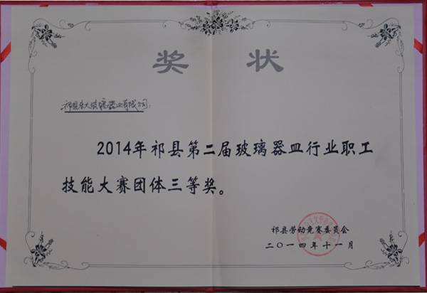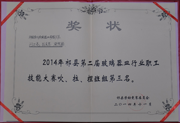 2014年被“中國日用玻璃協(xié)會授予高腳帝王杯、公爵杯榮譽(yù)稱號”
